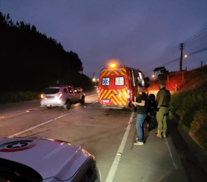 Acidente entre carro e motocicleta deixa jovem ferida na BR-280 em São Bento do Sul