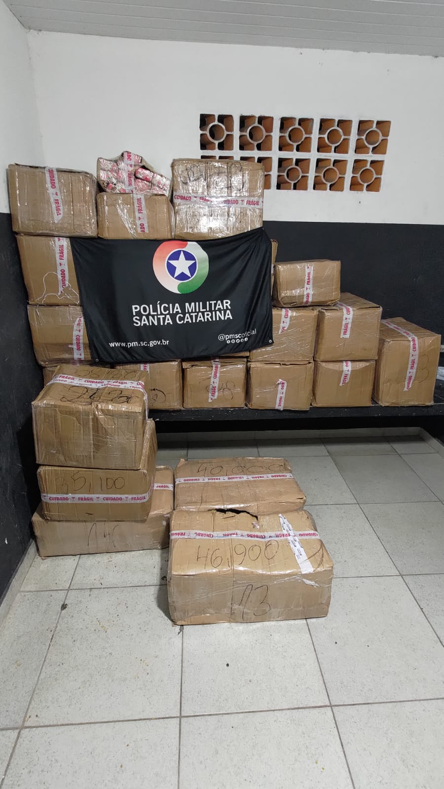 No sábado (19), policiais rodoviários federais apreenderam 140 quilos de maconha durante fiscalização na BR-280, em Mafra.