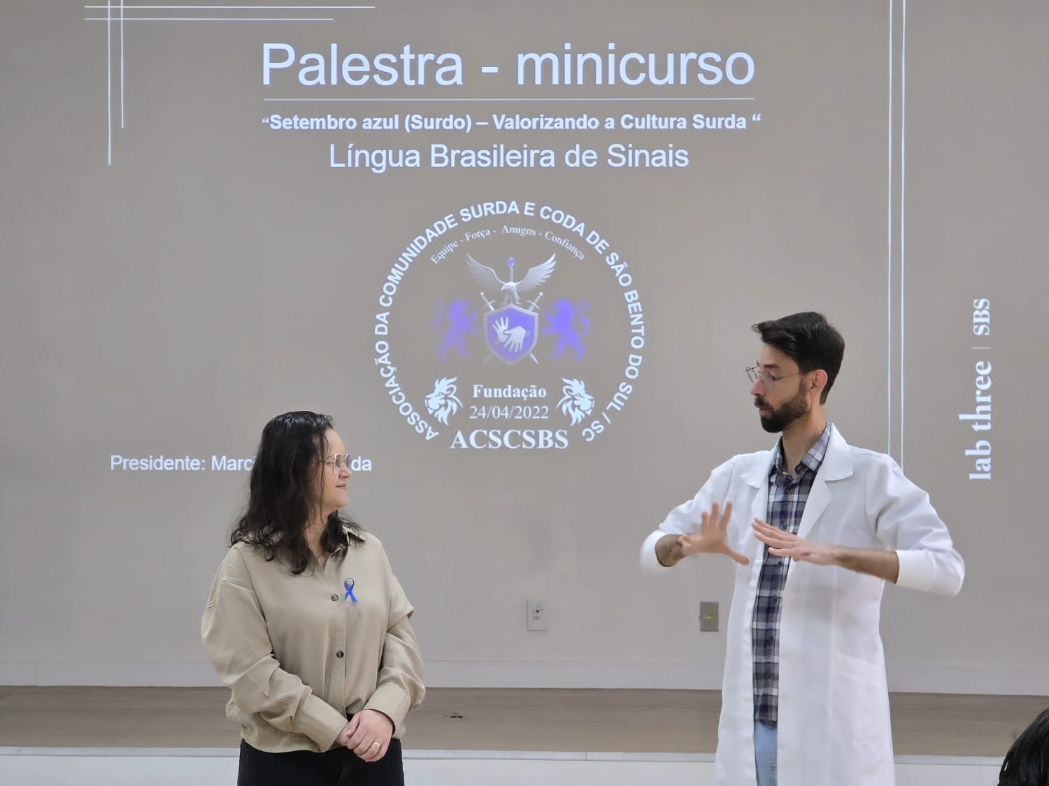 Em especial, agradecemos às intérpretes Dani, vinda de Blumenau, e Ana, de Florianópolis, pela dedicação e profissionalismo. Nossa gratidão também à Secretaria Municipal de Educação de São Bento do Sul, que gentilmente disponibilizou o auditório para a realização do evento.