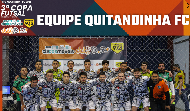 Na sequência, pelo jogo 16, o Quitandinha mostrou força e aplicou uma goleada de 6 a 0 sobre o CR Futsal. Os gols foram distribuídos entre Flávio, Prado, Yuri Santos, Willian Bolacha, Jeferson e Douglas, garantindo a vitória com amplo domínio em quadra.