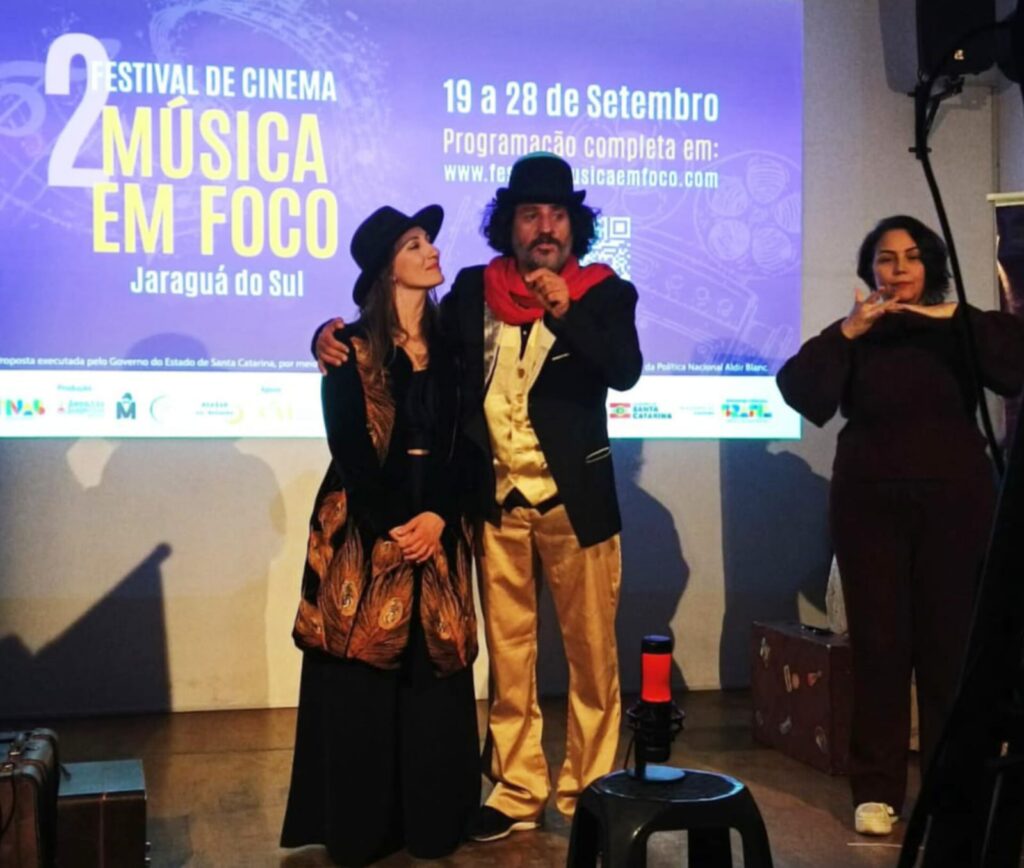 No último domingo, 28 de setembro, o ator e diretor de teatro e cinema Robson Rodrigues assumiu a live de encerramento do festival, dividindo a apresentação com a atriz Alexandra Meinchein, de Guaramirim. A performance conjunta encerrou a programação em grande estilo, celebrando a arte catarinense e o diálogo entre música e imagem.