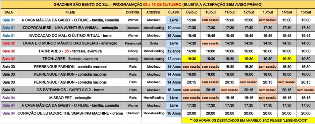 PROGRAMAÇÃO COMPLETA DO DIA 09 A 15 DE OUTUBRO
