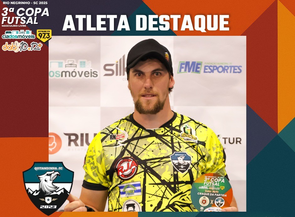 O goleiro do Quitandinha FC brilhou na vitória por 6×1 sobre o SO Resenha. Com defesas espetaculares e segurança dentro da área, ele fechou o gol e comandou a equipe durante toda a partida, garantindo a classificação para a decisão. Uma verdadeira muralha que representa o lema do time: garra, união e respeito. 🧤💪