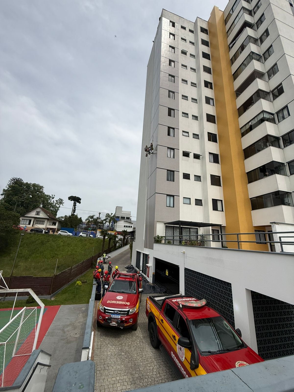 Trabalhador é resgatado após ficar preso em cadeirinha de segurança em edifício no Centro de São Bento do Sul