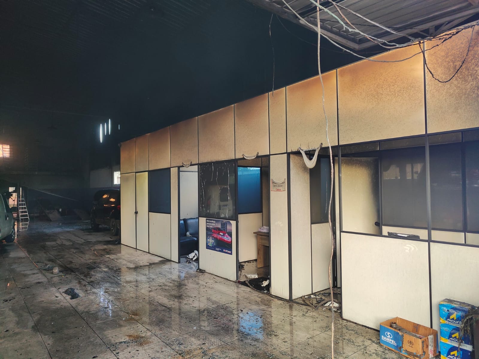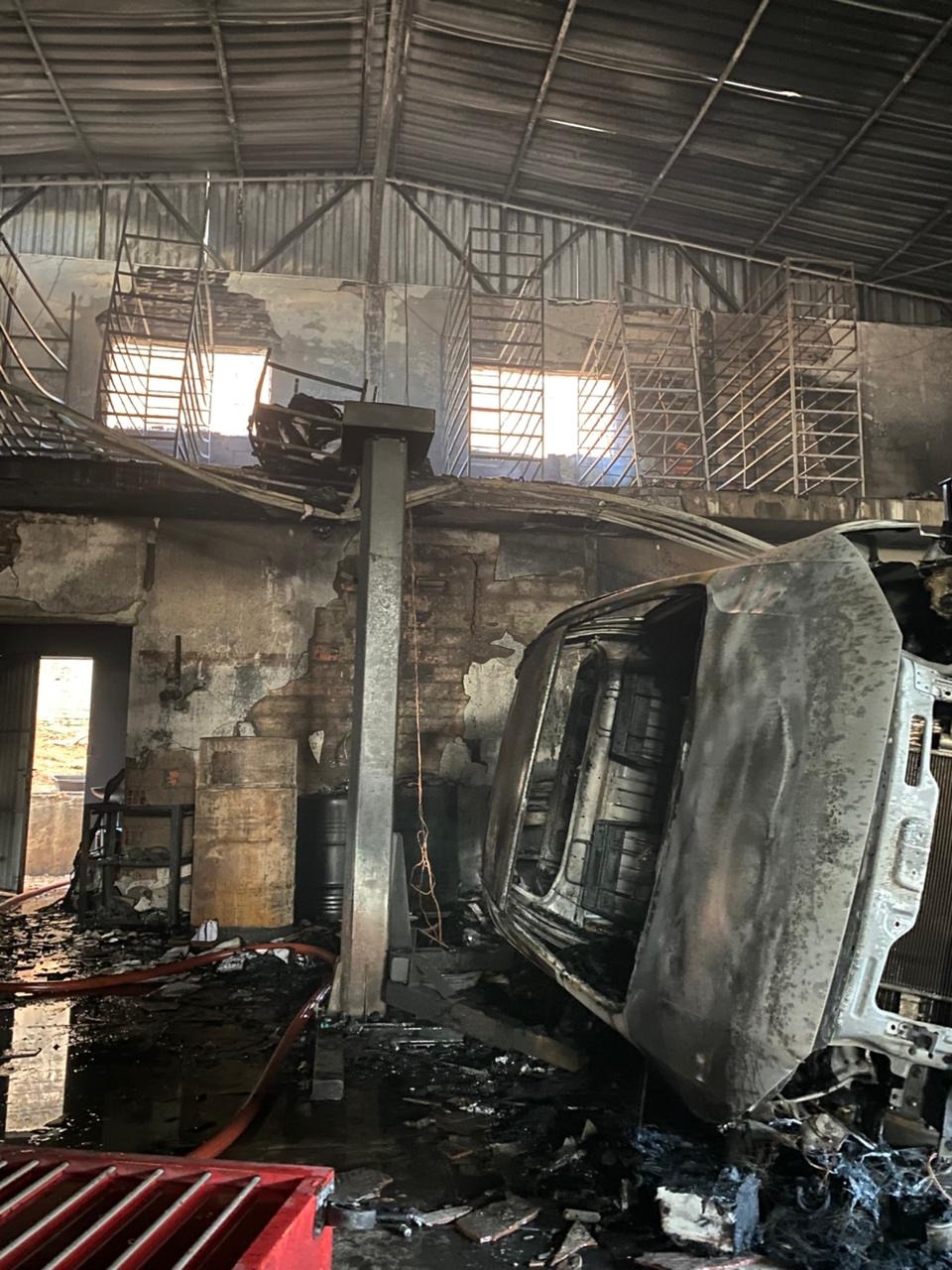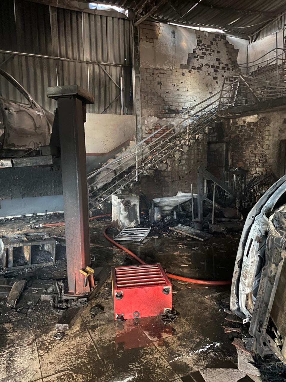 Cerca de 15 mil litros de água foram utilizados durante aproximadamente duas horas e meia de combate até a completa extinção do fogo. Dentro da oficina havia nove veículos, alguns deles com danos significativos, enquanto quatro carros estacionados na lateral do imóvel foram preservados.