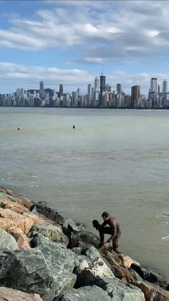 Ao alcançar o menino, ele já apresentava sinais de exaustão e havia ingerido água do mar. Imagens registraram o momento em que o policial retorna ao molhe com o garoto nos braços. Outro militar da mesma guarnição, que é formado em enfermagem, prestou os primeiros socorros ainda no local.