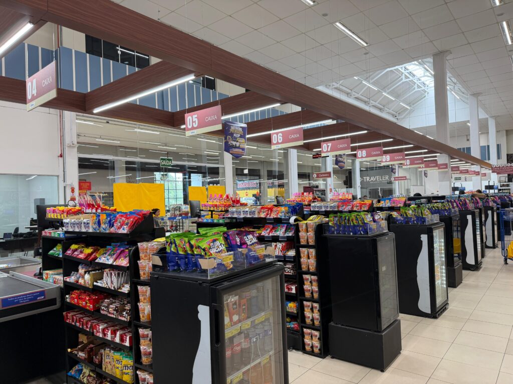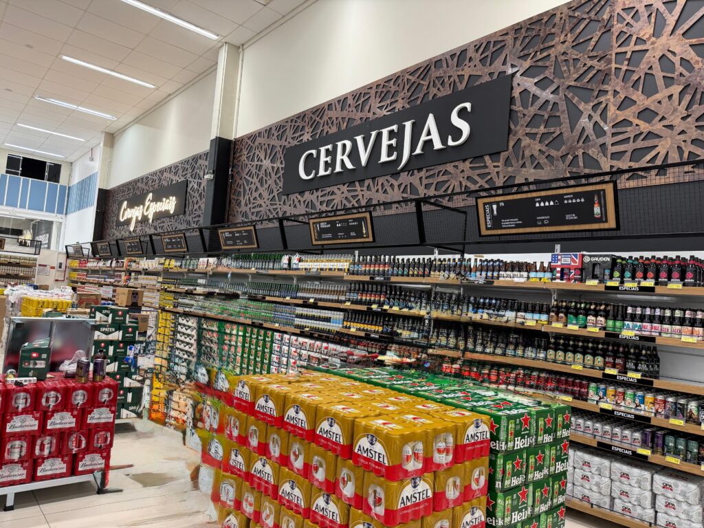 A loja foi projetada seguindo a árvore de decisão do cliente para tornar a jornada de compra mais fluida: sinalização clara e comunicação visual pensada para orientar o consumidor em todos os pontos do estabelecimento. Entre os diferenciais está um circuito de Retail Media, que integra o ambiente físico com as estratégias digitais do Condor e de indústrias parceiras por meio de painéis de LED instalados em áreas de alto fluxo, como perfumaria, açougue e pontas de gôndola.