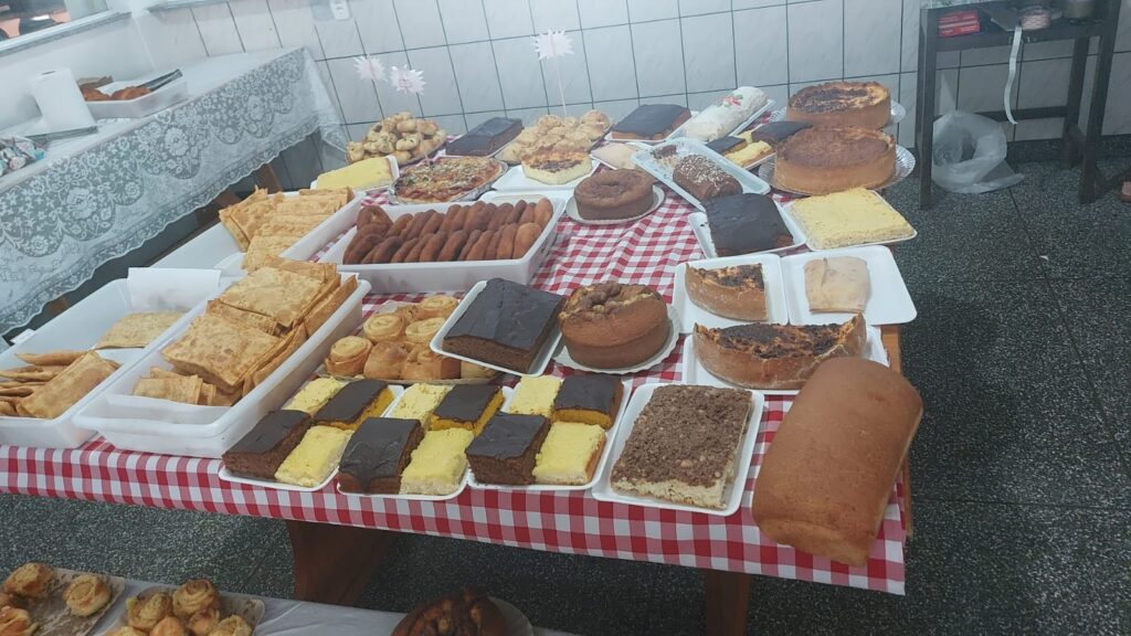 Vendas de pastéis (diversos sabores), bolo de cenoura e nega maluca.