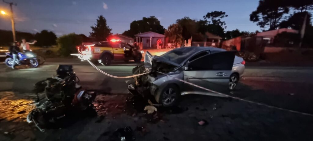 Três guarnições do Corpo de Bombeiros Militar de Canoinhas atenderam a ocorrência. Eles encontraram a moto e um Honda City, com placas de Bela Vista do Toldo, sobre a pista. O cenário era de extrema gravidade. A passageira foi localizada caída na via, politraumatizada, com estado neurológico crítico, pupilas dilatadas e sinais de choque. Ela também apresentava hemorragia ativa na região do fêmur direito, contida com torniquete, além de fraturas múltiplas.