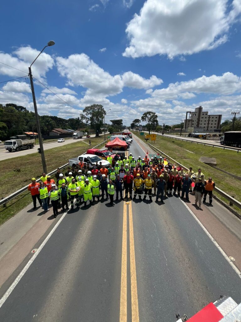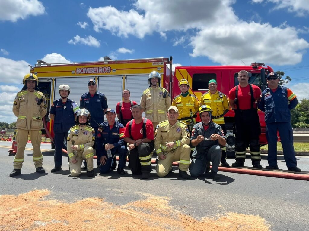 Simulado de grande acidente mobiliza equipes de emergência na BR-116 em Mafra