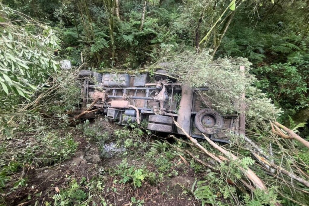 Na tarde desta segunda-feira (1º), um caminhão que transportava suínos saiu da pista e caiu em um barranco às margens da BR-280, em Três Barras. O acidente aconteceu por volta das 15h, na comunidade de São João dos Cavalheiros.