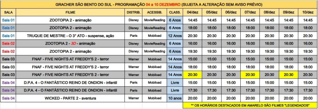 PROGRAMAÇÃO COMPLETA DO DIA 04 A 10 DE DEZEMBRO