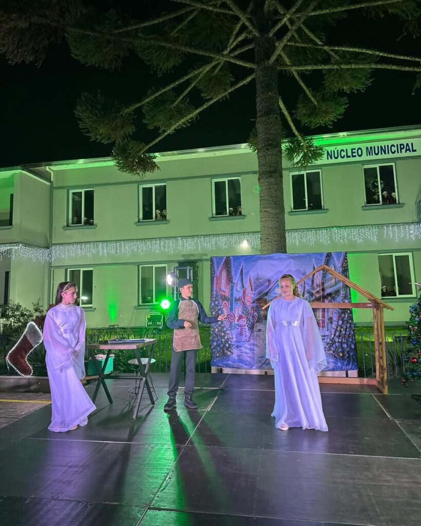 Realizado no Núcleo Municipal de Educação, o espetáculo reuniu centenas de moradores que prestigiaram a noite especial, preparada com dedicação para toda a comunidade. Entre luzes, vozes e encenações, o Auto de Natal proporcionou momentos de beleza e encantamento que marcaram o início das celebrações desta época tão especial.