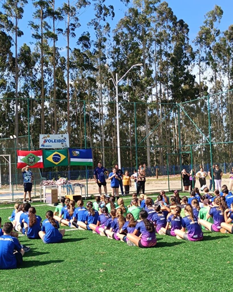 A Fundação Municipal de Esportes realizou nesta quinta-feira, dia 11, o encerramento das atividades da Escolinha de Voleibol, reunindo atletas das categorias de base, masculino e feminino, com idades entre 7 e 14 anos. A tarde foi marcada por momentos de integração, diversão e muito aprendizado, celebrando um ano de evolução e conquistas.