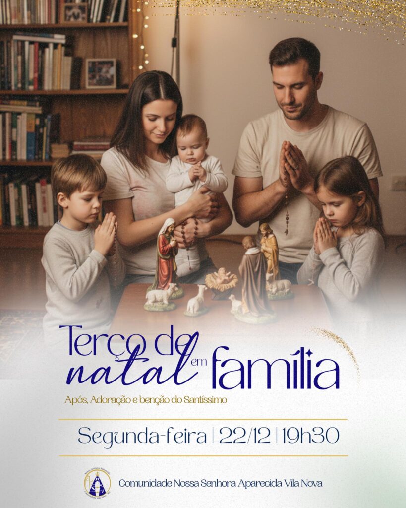 A Comunidade Nossa Senhora Aparecida, do bairro Vila Nova, convida toda a comunidade para participar de um momento especial de fé, oração e união neste período natalino. Nesta segunda-feira (22), às 19h30, acontece o Terço de Natal em Família, na igreja da comunidade.