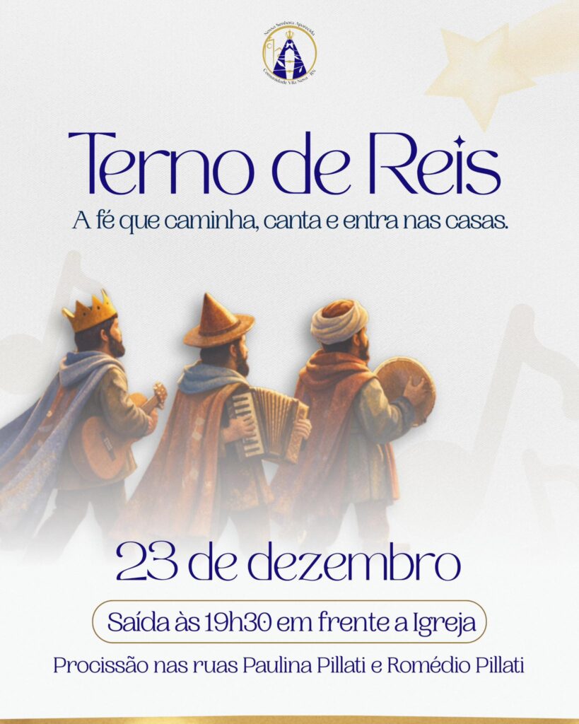 Já na terça-feira (,23), a comunidade será envolvida por uma tradição muito especial: o Terno de Reis. Nesta celebração popular, grupos percorrem as casas da comunidade levando cantos, orações e mensagens de fé, relembrando a visita dos Três Reis Magos ao Menino Jesus. As famílias que recebem o Terno de Reis acolhem os cantadores como sinal de gratidão, devoção e partilha, mantendo viva uma tradição que atravessa gerações.