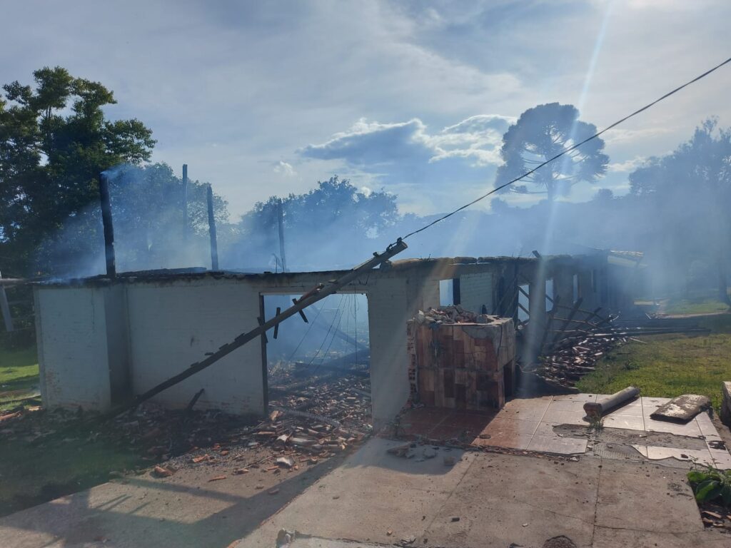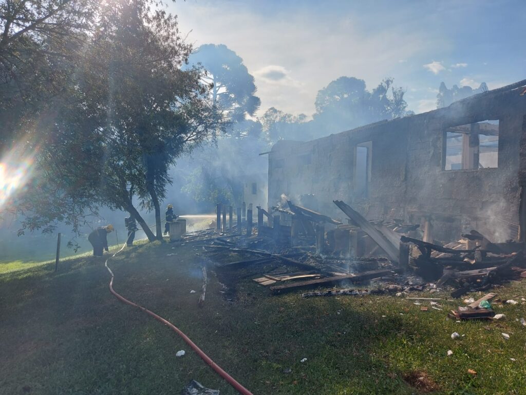 Um incêndio de grandes proporções atingiu uma edificação utilizada como local de eventos e área de festas em uma propriedade particular rural, na tarde desta sexta-feira (26), na Estrada Geral de Lajeado, região rural do município de Rio Negro, no Paraná, divisa com Rio Negrinho.A ocorrência foi atendida pelo Corpo de Bombeiros Militar de Rio Negrinho por volta das 15h50, com o emprego das viaturas ABTR-123, ABTR-05 e ASU-512.
