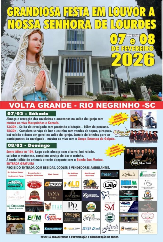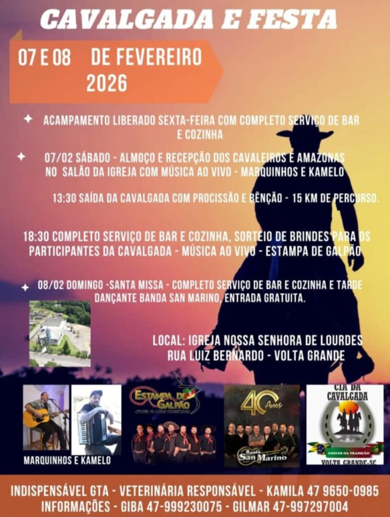 A localidade de Volta Grande se prepara para viver dois dias de fé, tradição e confraternização com a Cavalgada e Festa em Honra a Nossa Senhora de Lourdes, que acontecem nos dias 7 e 8, com uma programação especial aberta à comunidade e visitantes. O evento reúne manifestações religiosas, culturais e festivas, valorizando as tradições e promovendo momentos de união, com entrada totalmente gratuita.