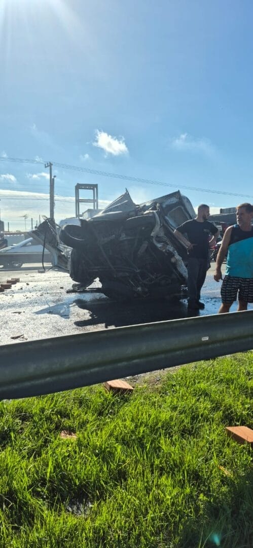 Um grave acidente na manhã desta quarta-feira (18) interditou a BR-101 em Itajaí e mobiliza socorristas, entre eles a equipe do helicóptero Arcanjo. Há, ao menos, um carro, uma Kombi e dois caminhões envolvidos na violenta colisão, que deixou os veículos menores irreconhecíveis.