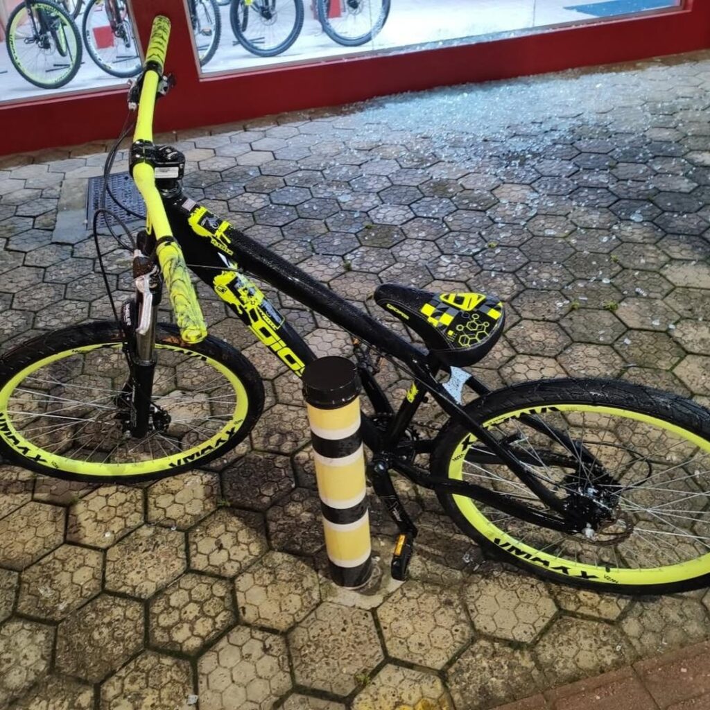 A ocorrência teve início por volta das 0h30, após a Central de Emergências (190) ser informada sobre um furto em andamento. Segundo relatos, testemunhas presenciaram o momento em que um homem quebrou a vitrine de uma loja e subtraiu uma bicicleta.