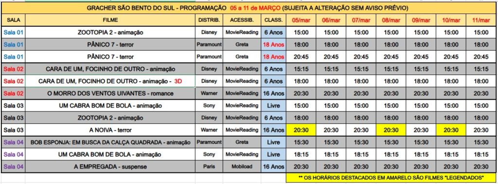 Além disso, o Cine Gracher também continua com os seguintes filmes em cartaz: