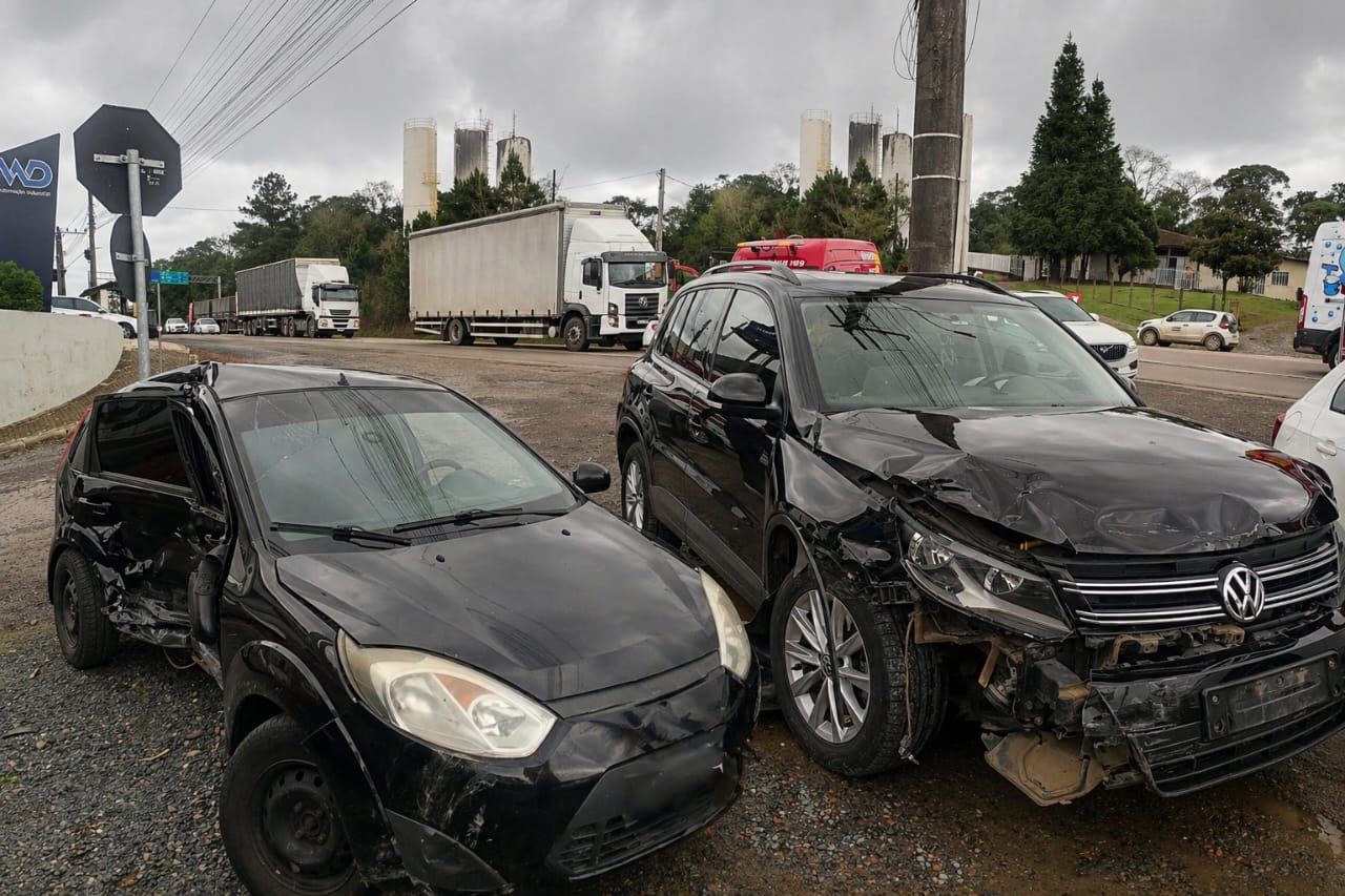 Colisão entre dois carros deixa motorista ferido na BR-280, em Rio Negrinho
