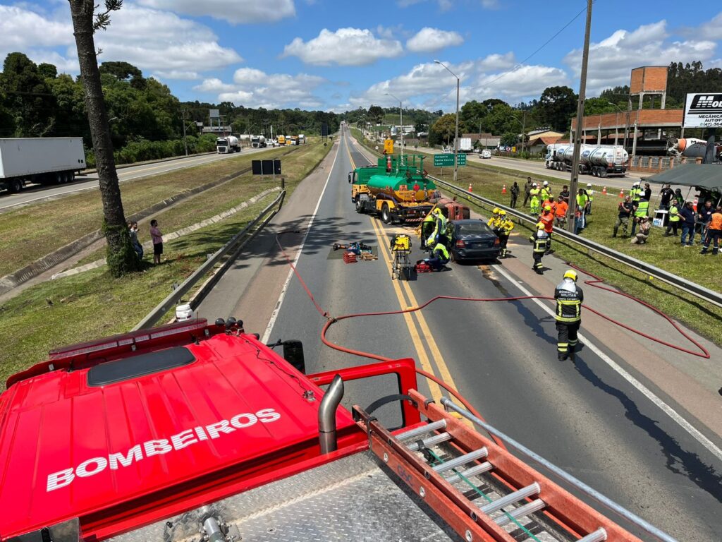 Simulado de grande acidente mobiliza equipes de emergência na BR-116 em Mafra