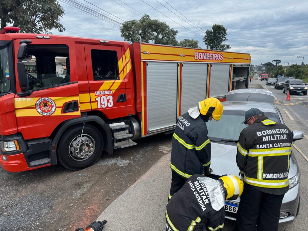 Bombeiros controlam princípio de incêndio em carro na SC-418, em São Bento do Sul