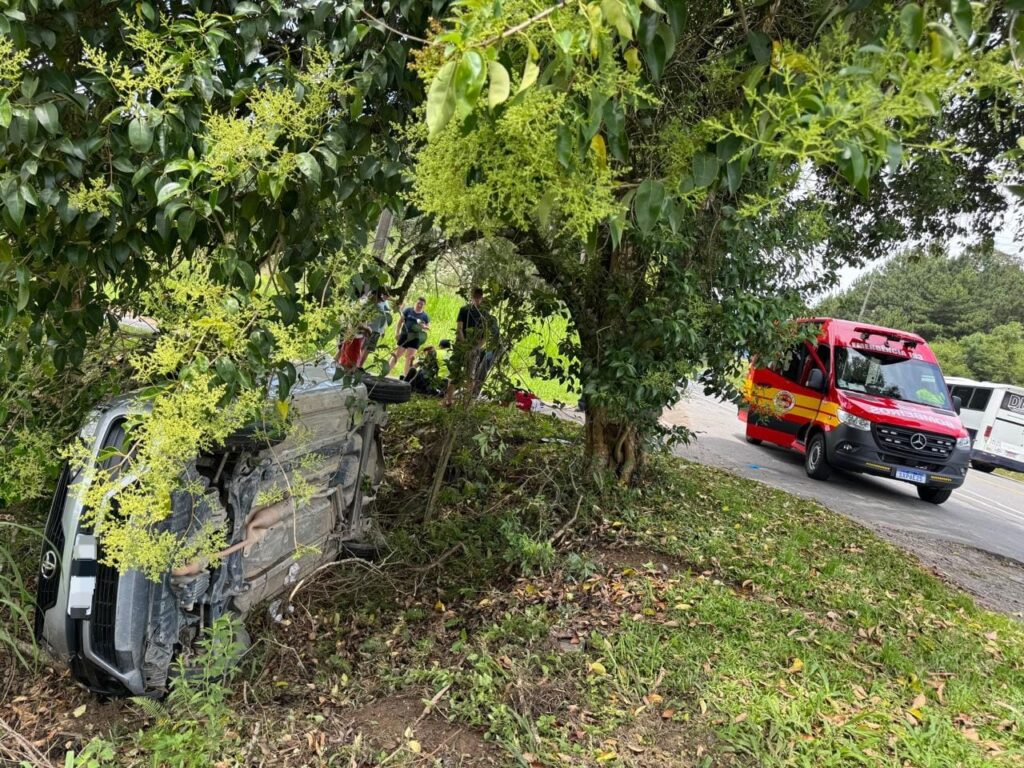 Um automóvel capotou na madrugada deste domingo (7) na SC-418, em Campo Alegre. A ocorrência foi atendida pelo Corpo de Bombeiros Militar por volta das 4h50. No local, a guarnição encontrou um Volkswagen Gol prata capotado, porém sem condutor. Segundo informações repassadas por solicitantes, o motorista teria fugido antes da chegada dos bombeiros. Como não […]