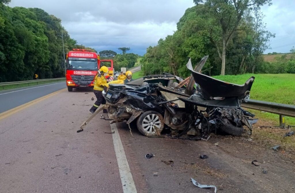 Motorista morre após colisão frontal entre carro e caminhão na BR-116 em Papanduva