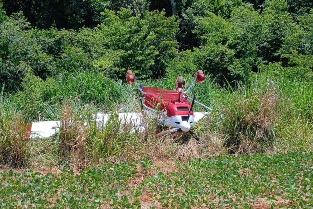 Avião de pequeno porte faz pouso de emergência e tomba em plantação em SC