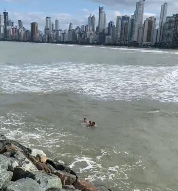 Policial se lança ao mar e salva menino de 11 anos arrastado pela correnteza em Balneário Camboriú