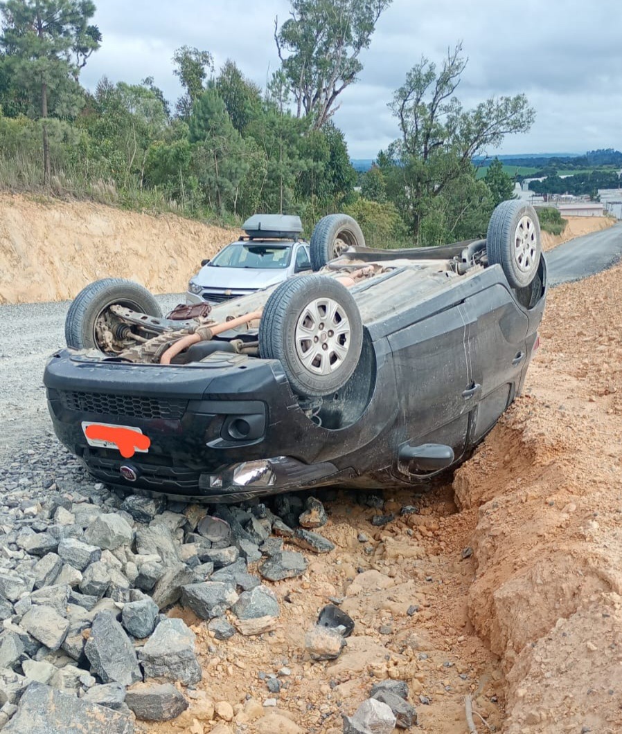 Mulher é levada ao hospital após carro capotar em Rio Negrinho