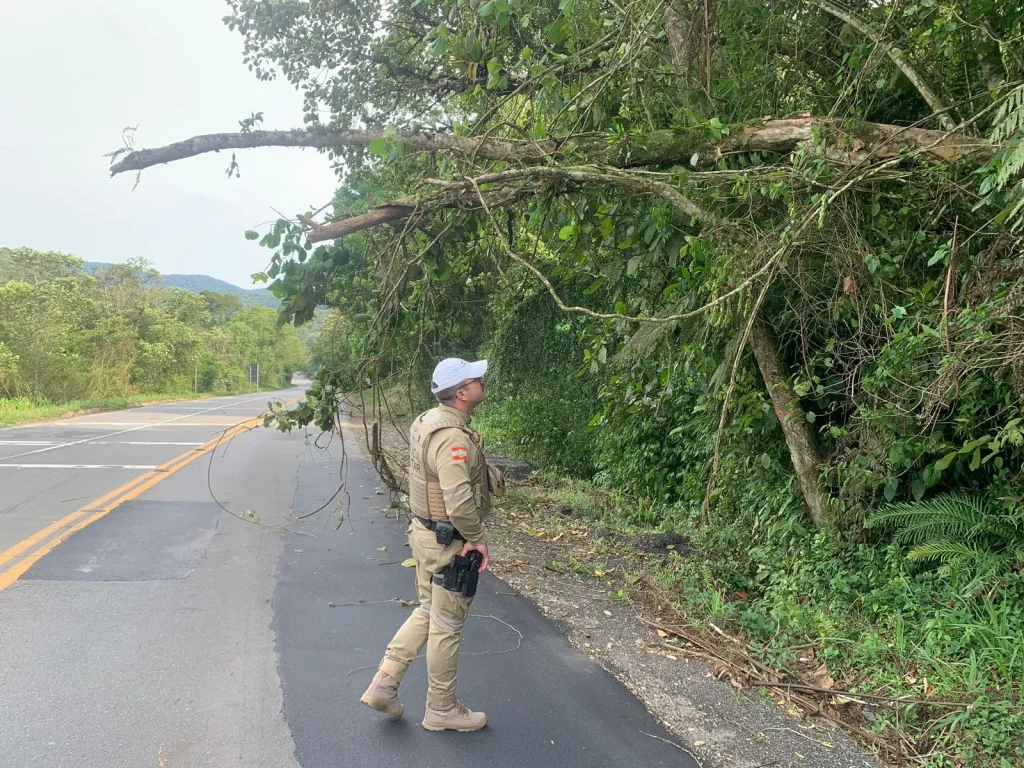 Corpo de Bombeiros remove árvore caída na SC-418 em Campo Alegre