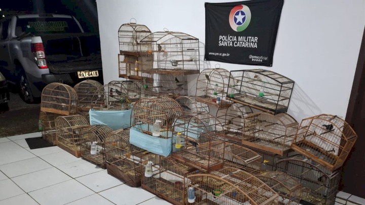 Trinta e cinco pássaros mantidos em cativeiro são resgatados em SC