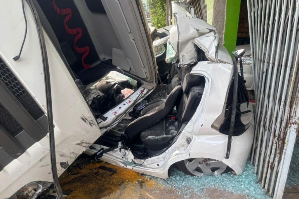Casal de idosos sobrevive após carro ser esmagado por caminhão desgovernado em SC