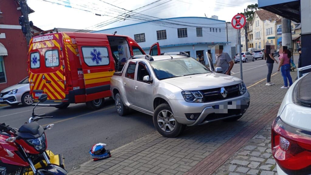 Colisão entre carro e motocicleta é registrando centro de São Bento do Sul