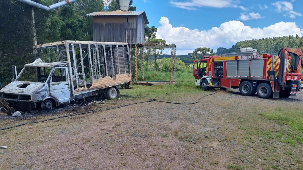 Incêndio destrói veículo abandonado em fábrica desativada de São Bento do Sul