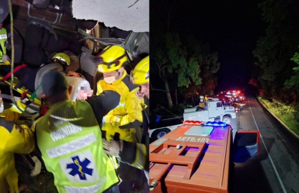 Ônibus cai em ribanceira, mata três pessoas e deixa 13 feridas na BR-470 em SC
