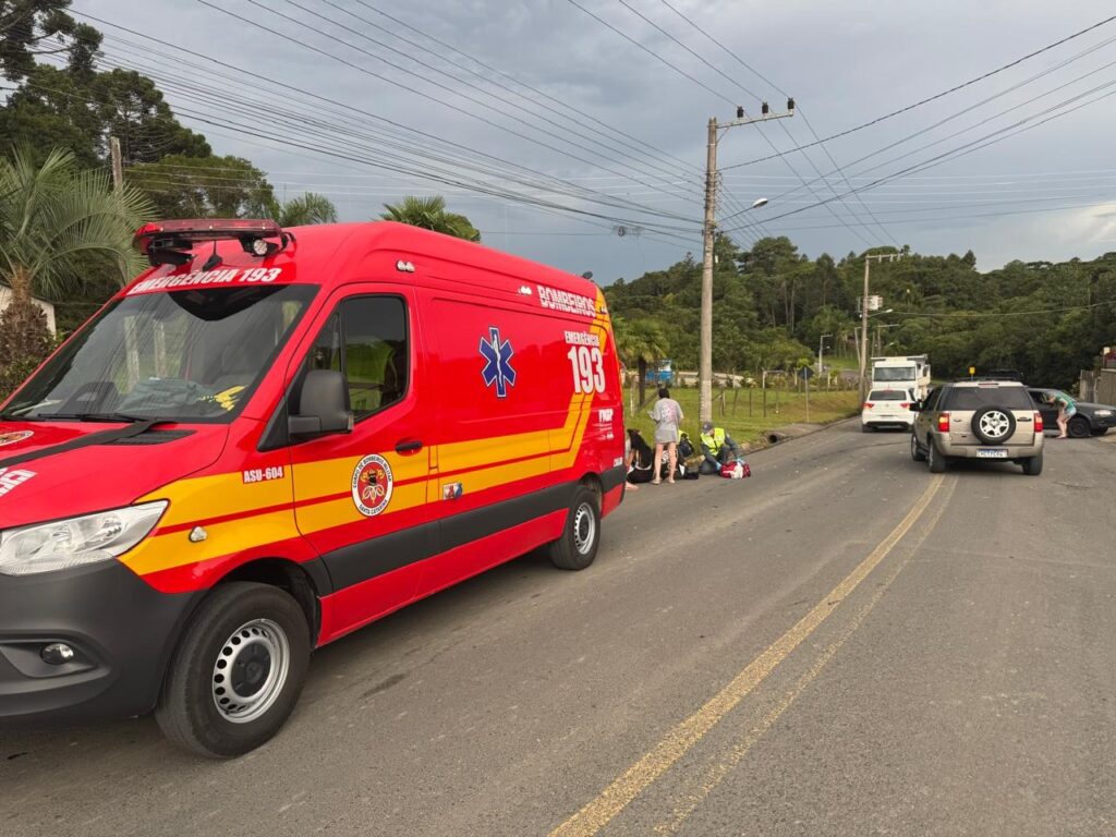 Colisão entre motocicleta e carro deixa duas pessoas feridas em São Bento do Sul