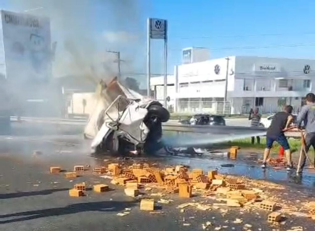 Um grave acidente na manhã desta quarta-feira (18) interditou a BR-101 em Itajaí e mobiliza socorristas, entre eles a equipe do helicóptero Arcanjo. Há, ao menos, um carro, uma Kombi e dois caminhões envolvidos na violenta colisão, que deixou os veículos menores irreconhecíveis. Conforme a Polícia Rodoviária Federal, três pessoas morreram. Testemunhas relatam que elas […]